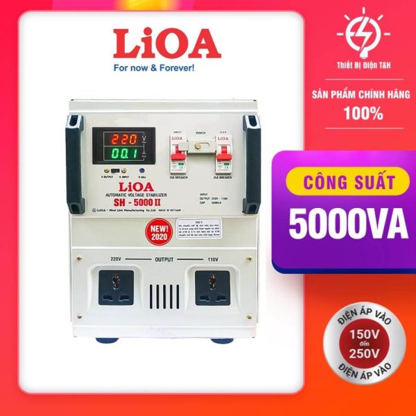 Ổn áp Lioa 5KVA SH 5000II máy chạy không rung  và sự tiêu hao điện rất thấp cùng công suất 5kVA, phù hợp cho Xưởng sản xuất , Văn phòng , gia đình …., tiết kiệm chi phí , tiết kiệm điện năng.